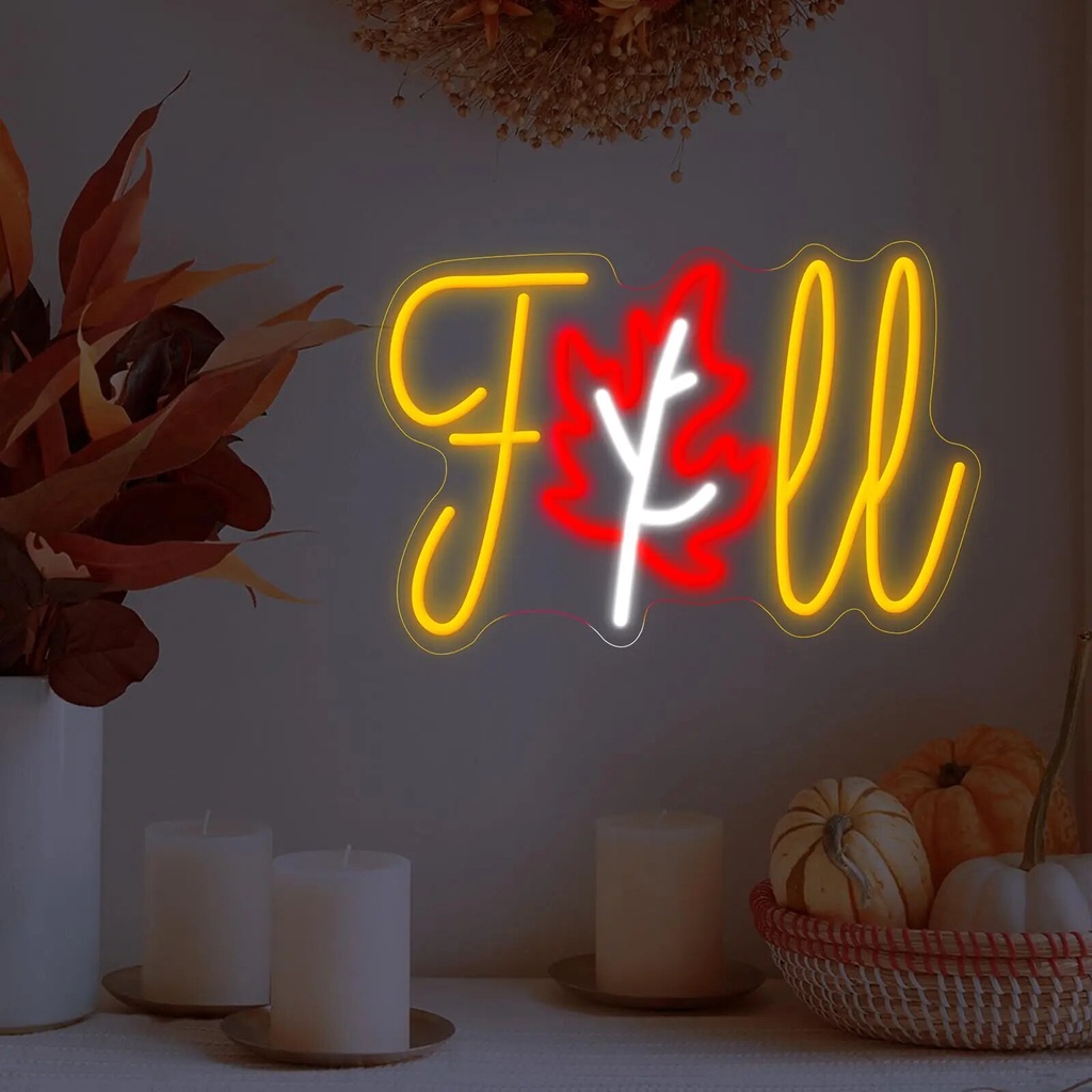 Thanksgiving Fall Neon Sign, Maple Leaf LED Neon Sign, Dimmable USB Powered Neon Light for Harvest Celebrate Party Holiday Gift