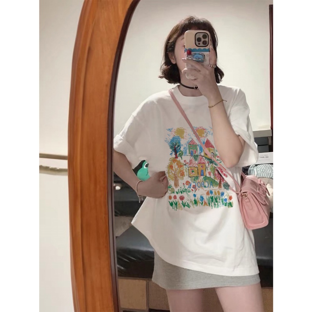 The Monseur Gallery Kaos Wanita Oversize Cartoon color graffiti Style baju atasan wanita terbaru | Kaos baju Wanita Putih