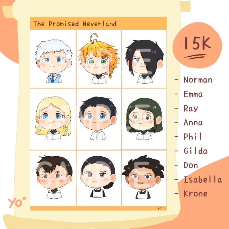 The Promised Neverland Sticker Fanmerch ( TPN Kisscut Stiker Sheet ) A5