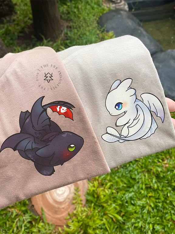 Theeve KAOS TSHIRT Toothless Series Night and Light Fury Couple I Atasan Korea Anak Dewasa Wanita Pria Unisex Oversize Jumbo Bigsize Bahan Katun