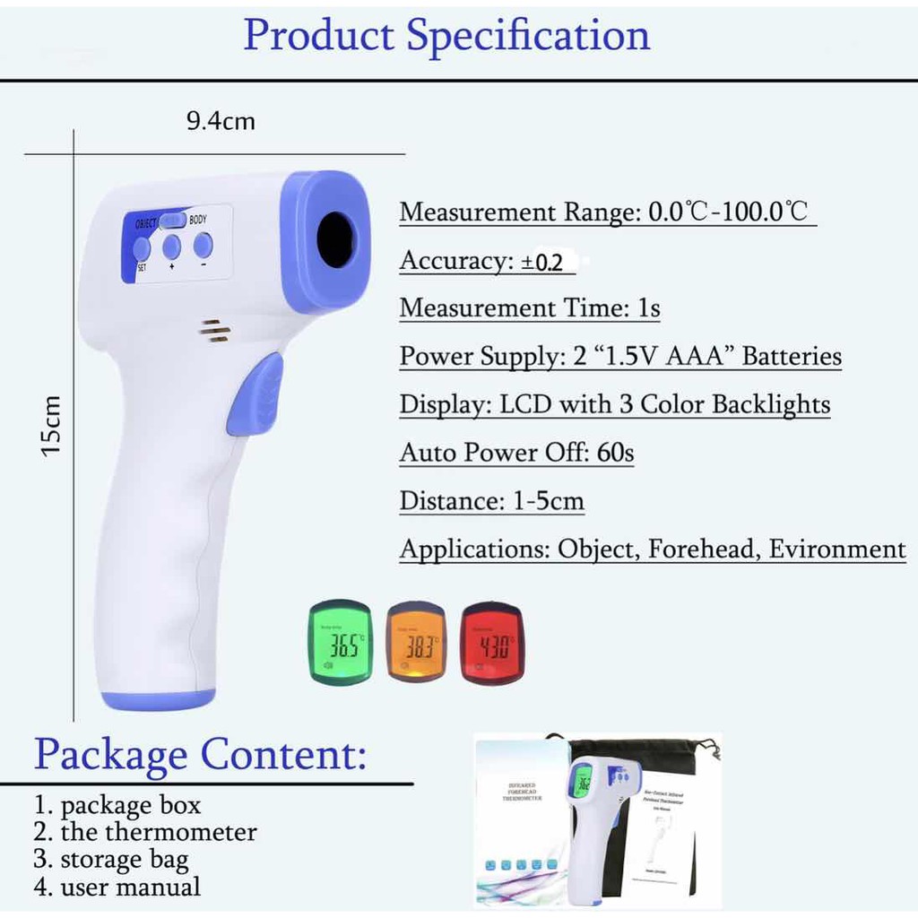 Thermogun / Thermometer Digital Infrared Gun / Termometer Suhu Tubuh /Infrared thermometer Dahi (25)