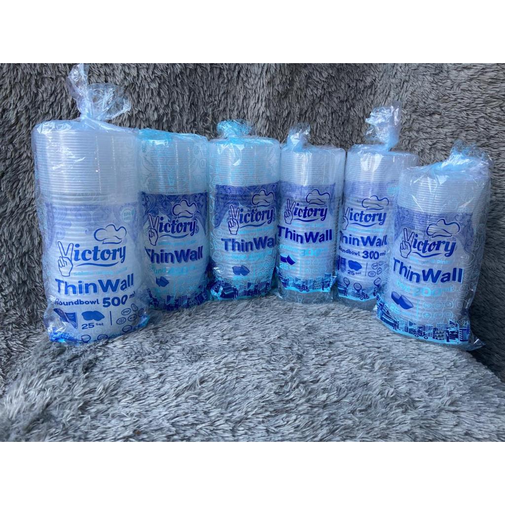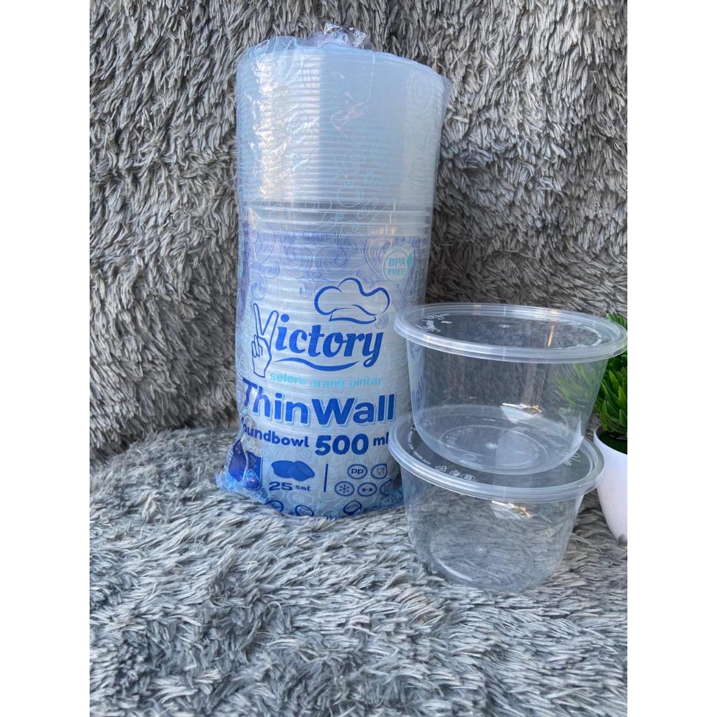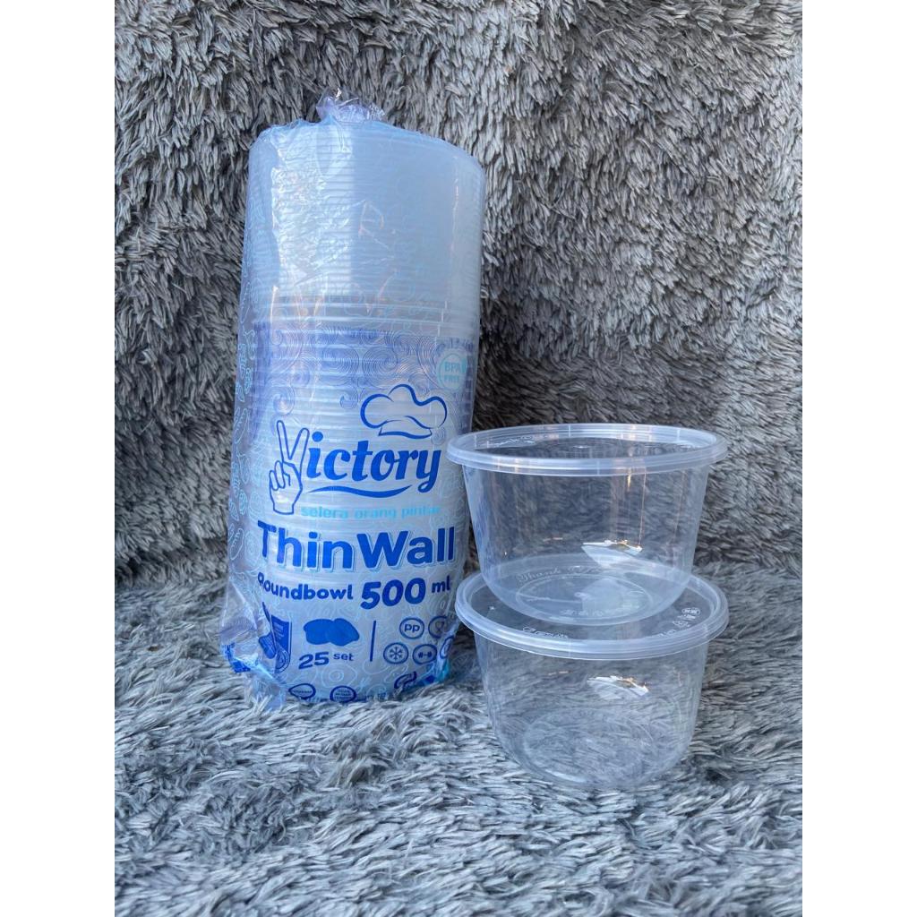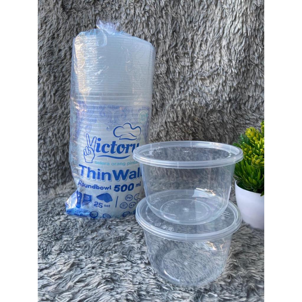 Victory Thinwall. 500ml (25) Mangkuk Halal Plastik Bulat + Tutup Wadah Makanan Minuman Salad Dessert