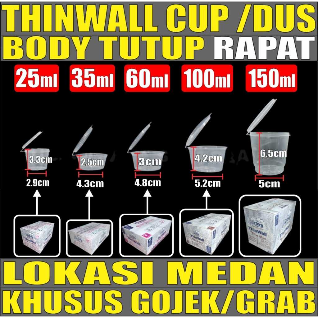 Thinwall Cup Rapat 25ml 35ml 60ml 100ml 150ml Dus Bulat Cup Sambel n Cup Puding Plastik Gjk Medan