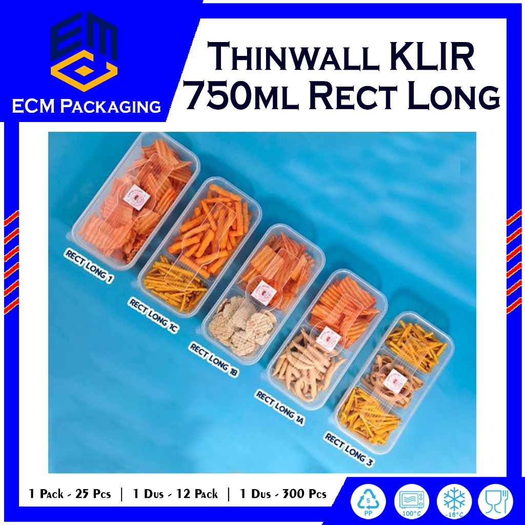 Thinwall KLIR Rectangle Long (RL) 750ml | Thinwall KLIR RL1 RL3 RL1A RL1B 25 pcs | Kotak Snack | Kotak accesories | kotak perhiasan | kotak makan | tempat snack