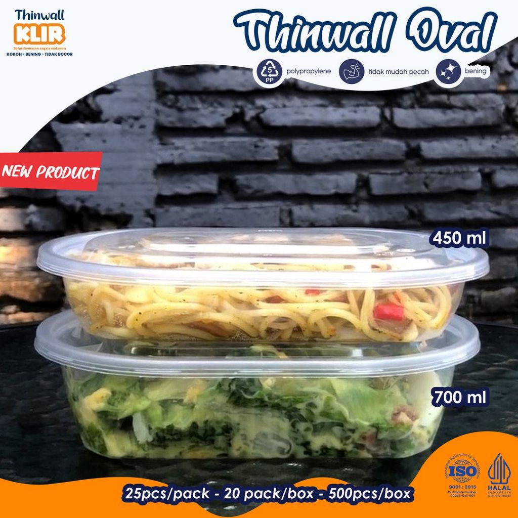 Thinwall Oval KLIR 450ml 700ml / Tempat Makan Plastik Thinwal Spaghetti Snack Makanan