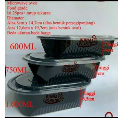 Thinwall Oval Uk 750 ML | Lunch Box Oval uk 750 ML Warna Hitam & Putih