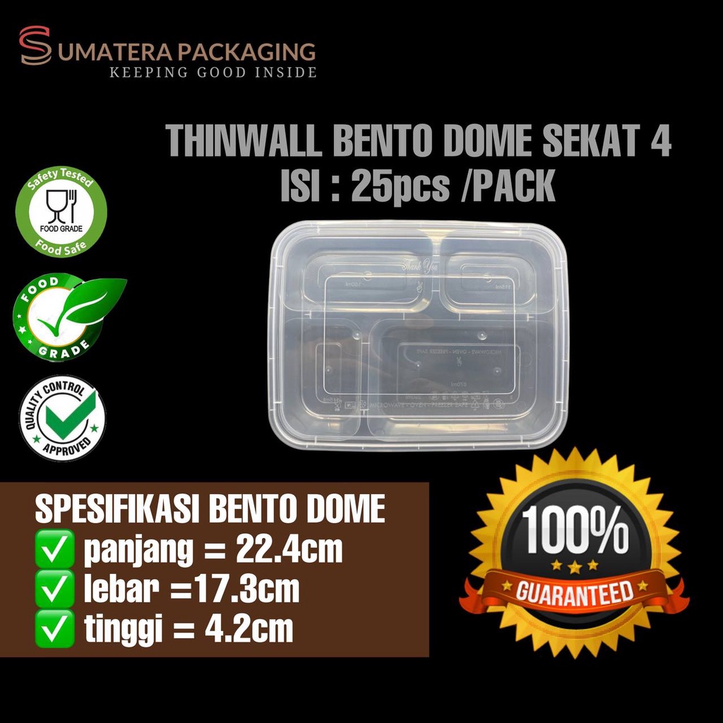 Thinwall Sekat 4 Dome 25pcs Cembung Kotak Makan Bento Medan