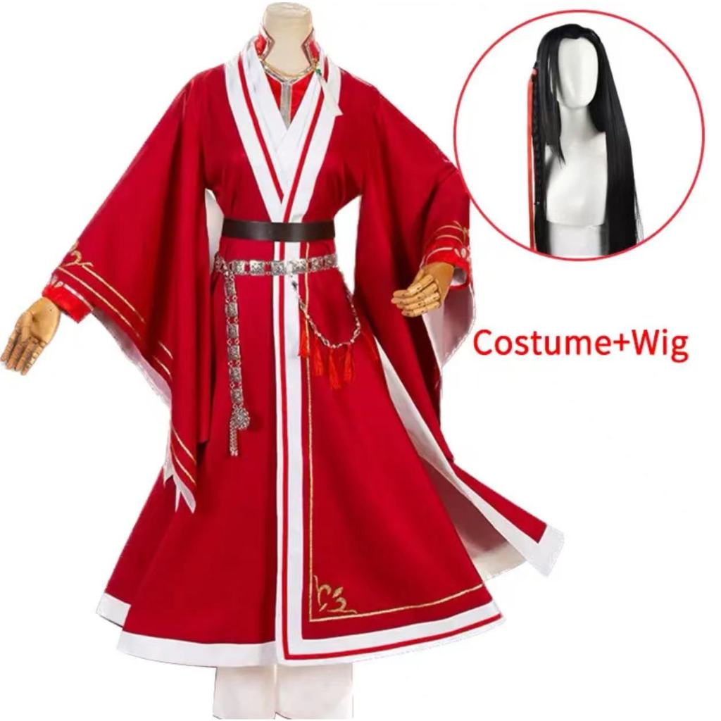 Tian Guan Ci Fu Cosplay Costumes Hua Cheng Cosplay San Lang Red Sets Hua Cheng Wigs Party Costumes Halloween wig and shoes