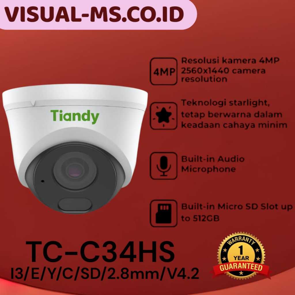 Tiandy TC-C34HS 4MP Fixed Starlight IR Bullet Camera - VMS