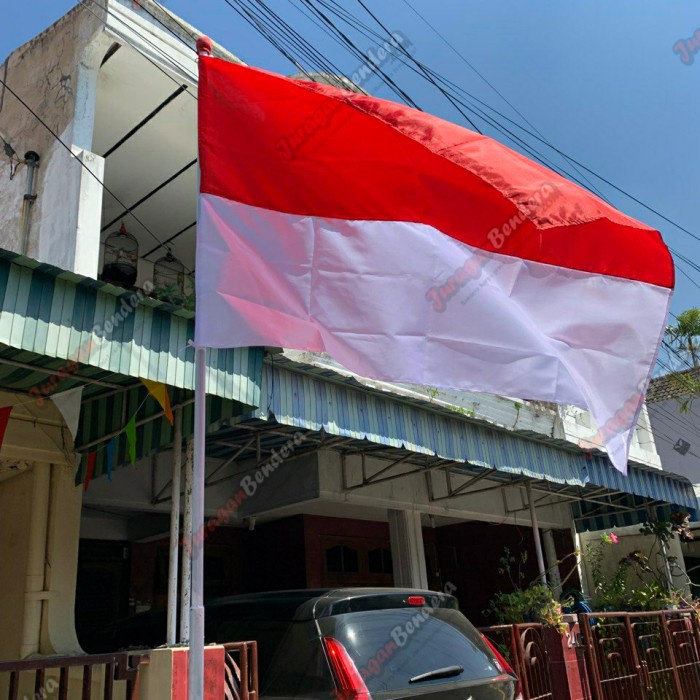 Tiang Bendera Rumah 3M + Bendera Merah Putih Rumah - Tiang Besar, Bendera Peles