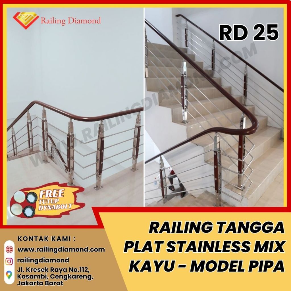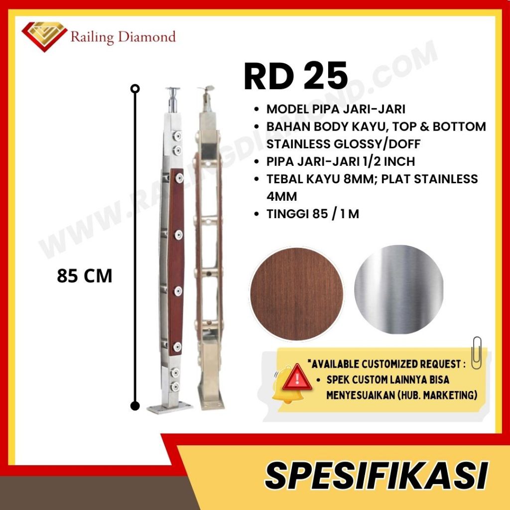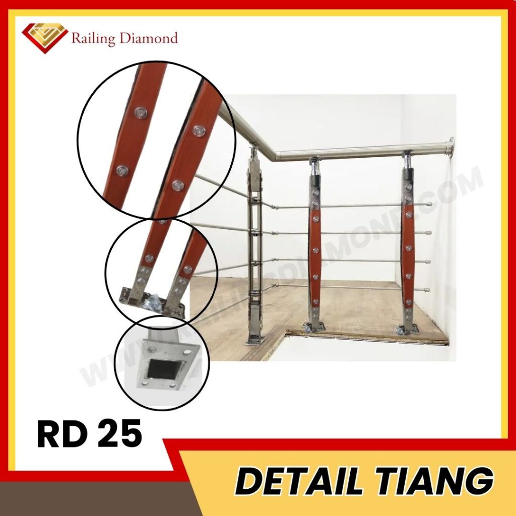 Tiang Railing Tangga Stainless Lapis Kayu RD 25