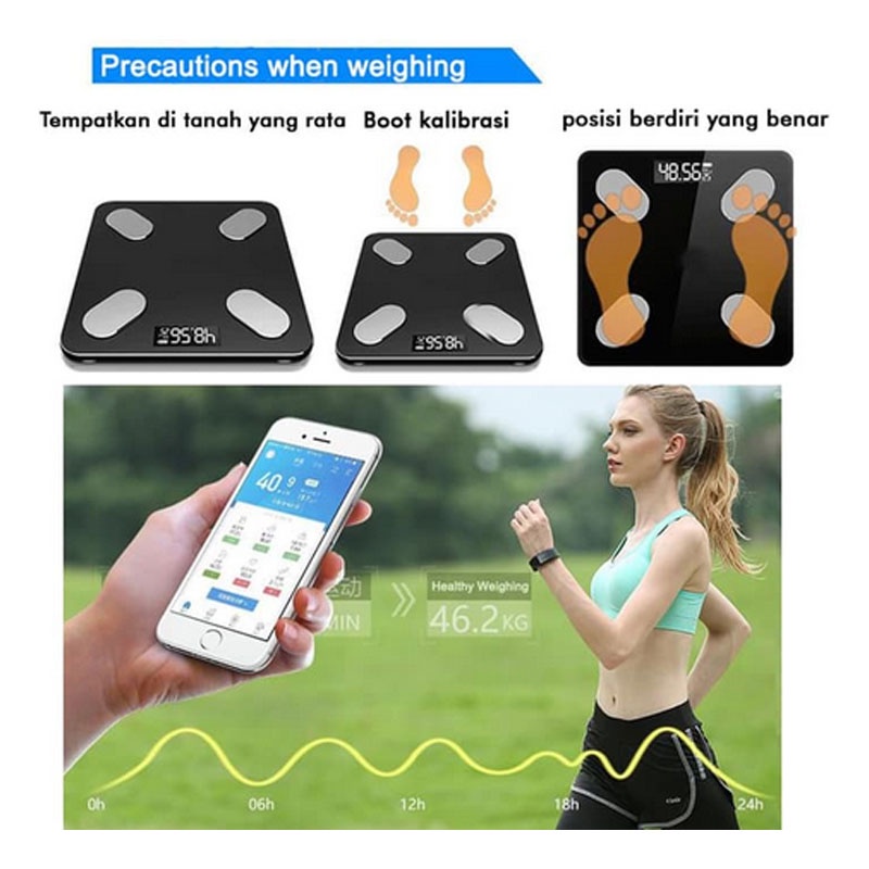 Timbangan Badan Digital Sensor Body Fat Monitor BMI Smart Bluetooth Weight Scale Timbangan Berat Badan Sensor