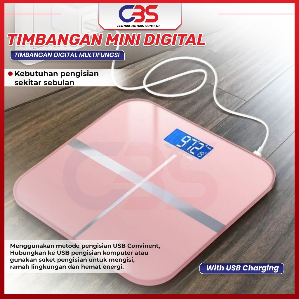 Timbangan Badan Mini Digital Hitam Polos 180 KG Timbangan Dewasa Timbangan Lemak Timbangan Badan Digital With USB Charging ANTI PECAH
