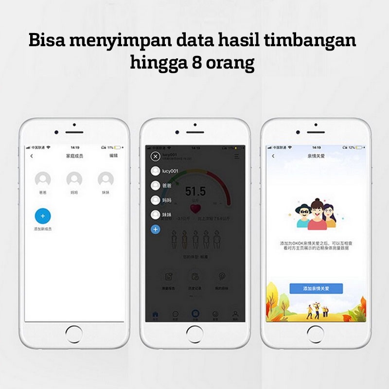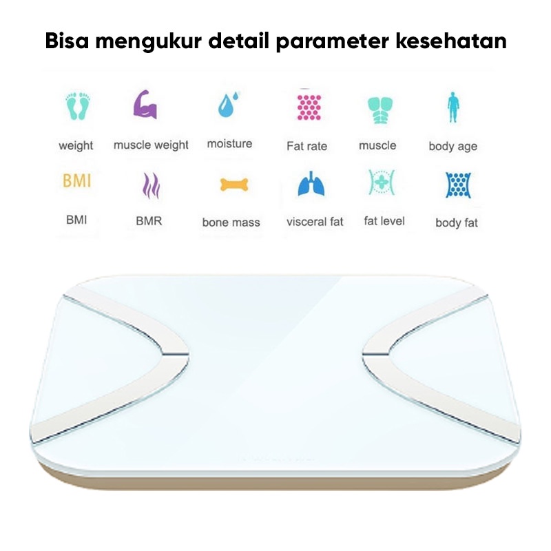 Timbangan Berat Badan Digital Bluetooth Smart Scale Timbangan Body Fat BMI Alat Ukur Lemak Air Tulang Charge