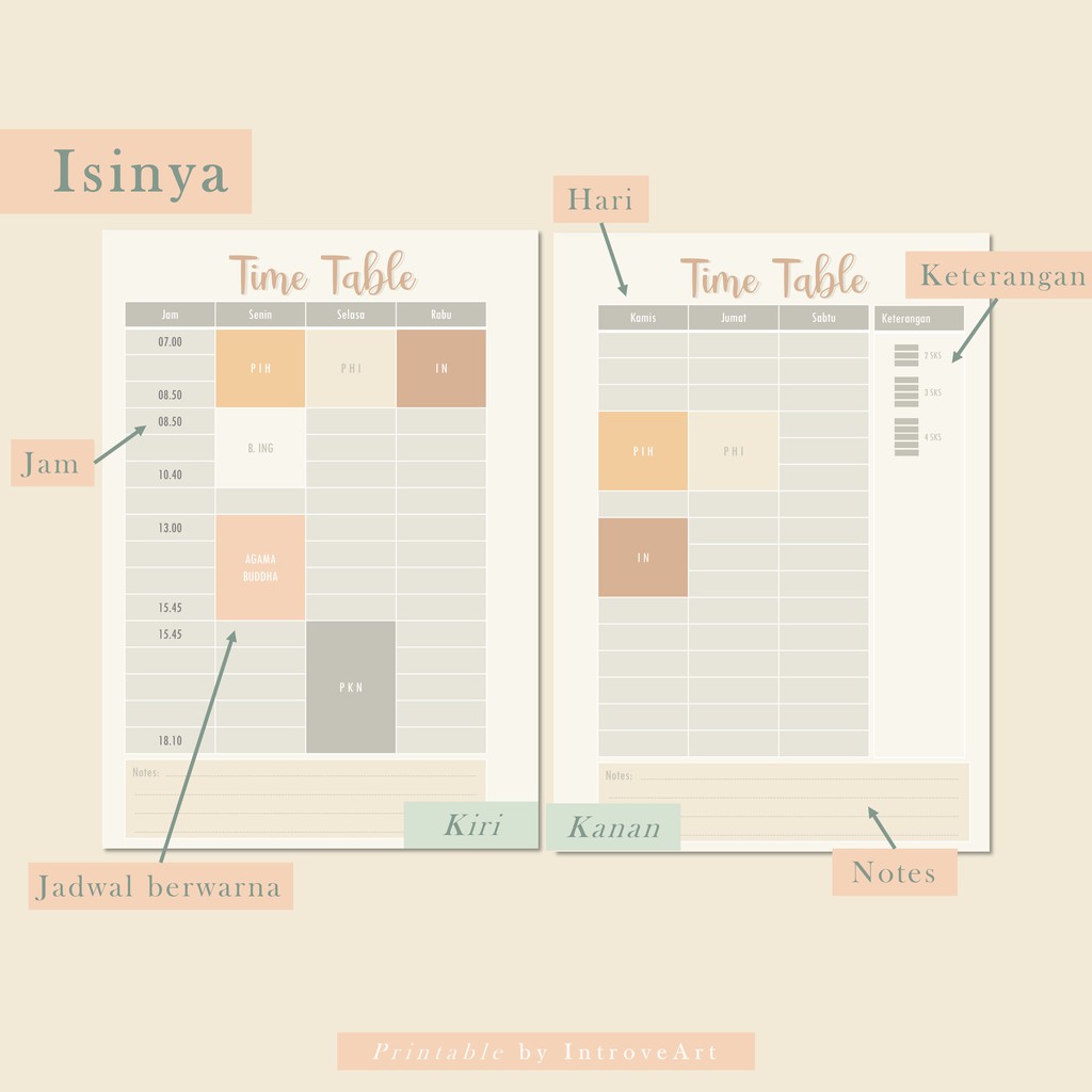 Time-Table Planner Custom Ukuran A5 (untuk binder) [Printable / Digital File]