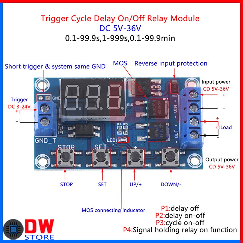 Timer Delay Trigger MOSFET Relay Cycle Time On Off DC 12V-24V MOS