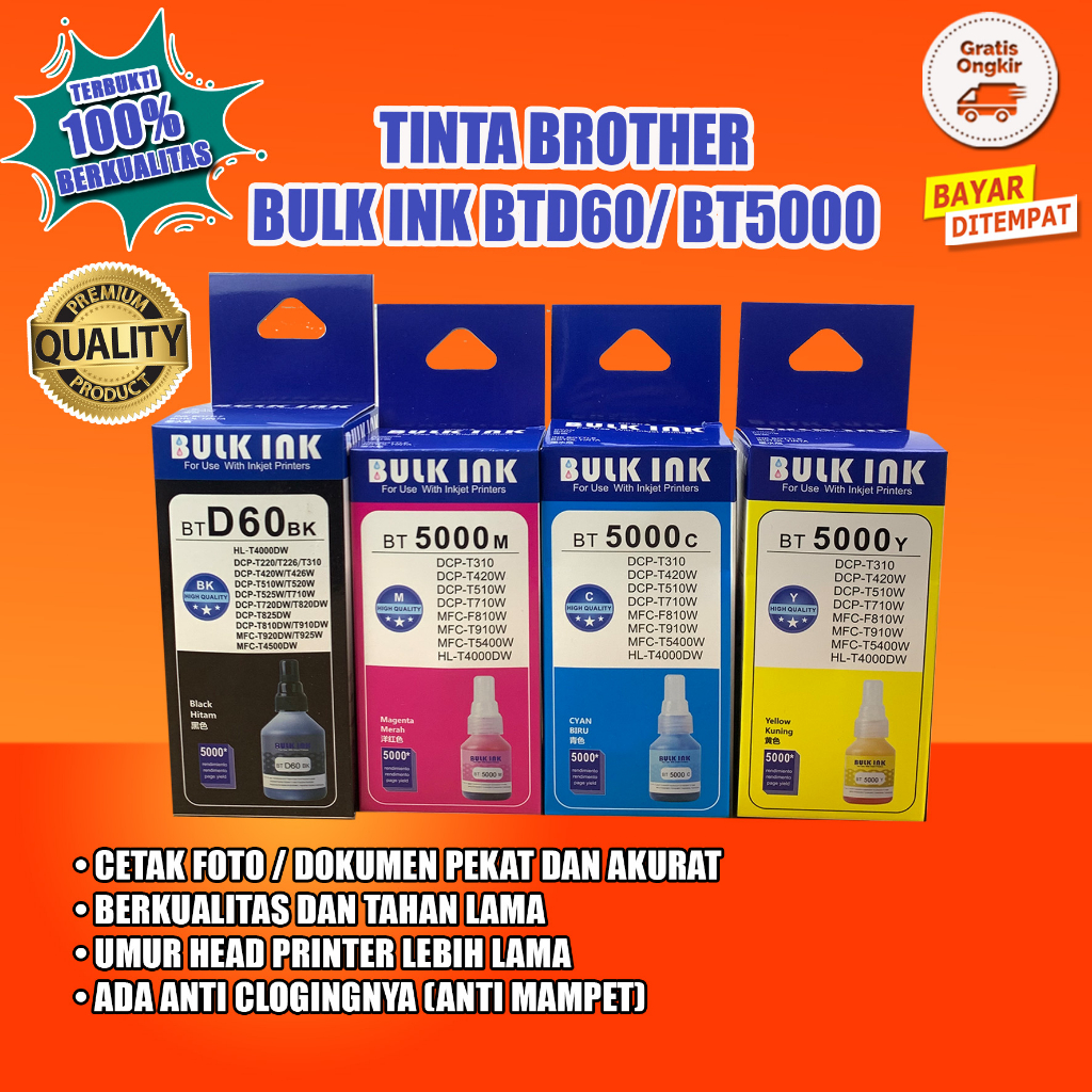 Tinta Brother BT5000 D60 CMYK Original BULK INK untuk Printer DCP T720DW T420W T300 T310 T510W T710W T810W
