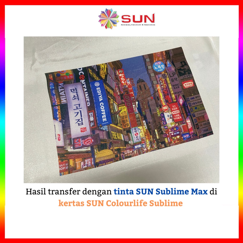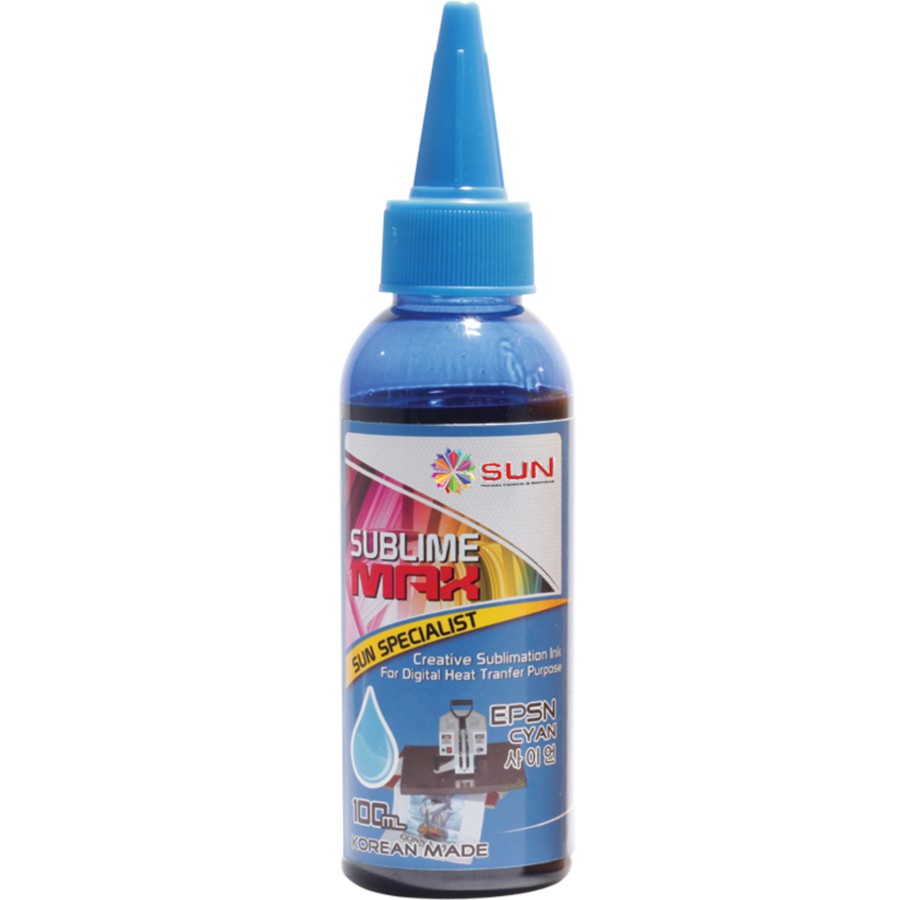 Tinta Epson 664 / 673 Sablon Sublim Photo Korea Terbaik - SUN Sublime Max Ink 100 ml ( transfer ke mesin press Kaos, Mug, Piring, Keramik, Lanyard ) Epson L100 / L110 / L120 / L210 / L220 / L300 / L360 / L800 / L805 / L1300 / L1800