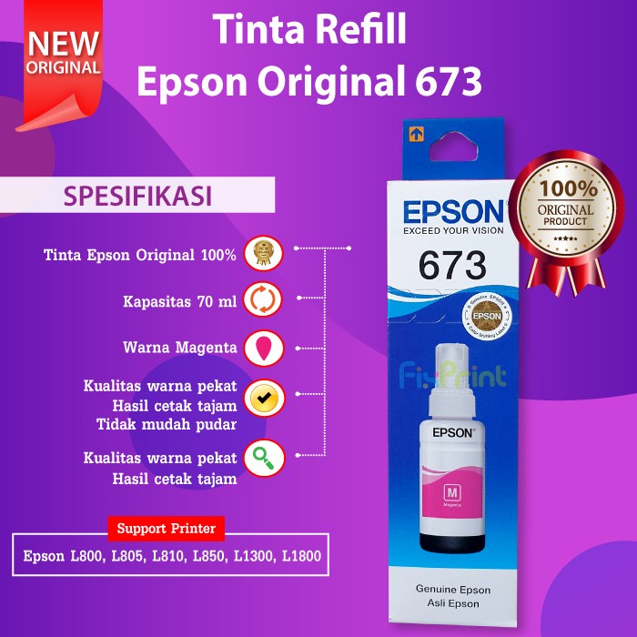 Tinta Epson 673 Refill Printer Epson L800, Epson L805, Epson L810, Epson L850, Epson L1800 black colour