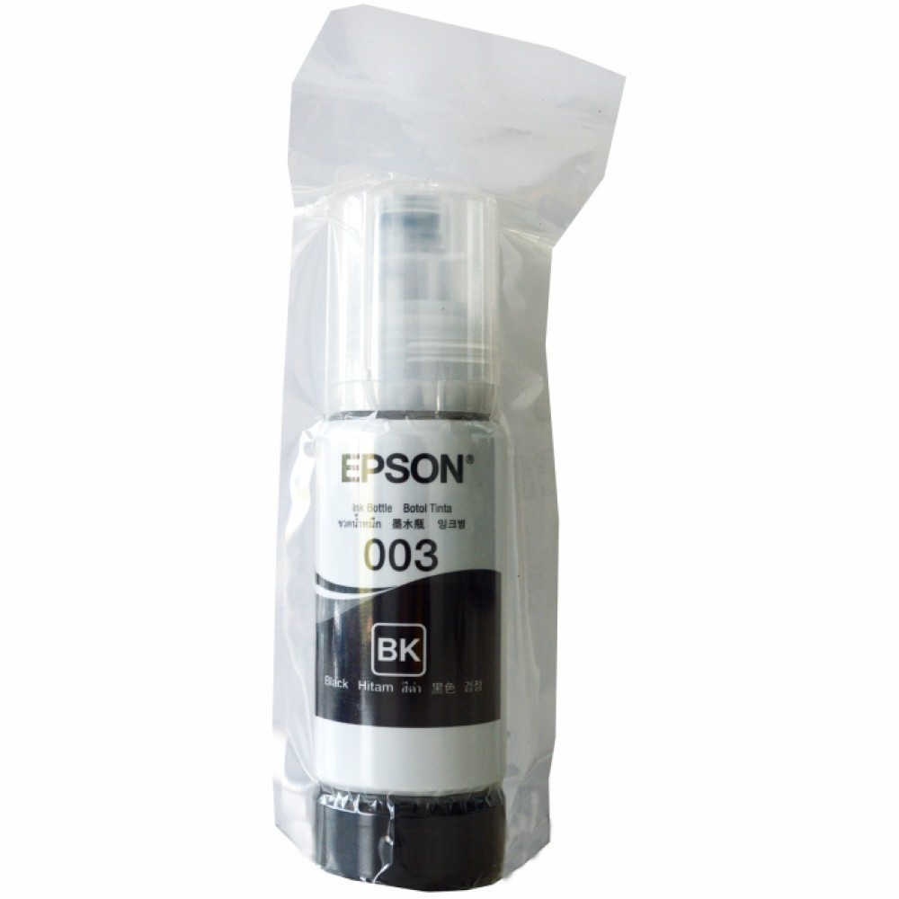 Tinta Epson EcoTank 003 Original ASLI Cyan Magenta Yellow Black Refill Botol Ink Printer L1210 L1250 L1256 L3210 L3216 L3250 L3256 L5290 L5296 L1110 L3110 L3150 L5190 Black Color Hitam Warna Ori 100% Resmi