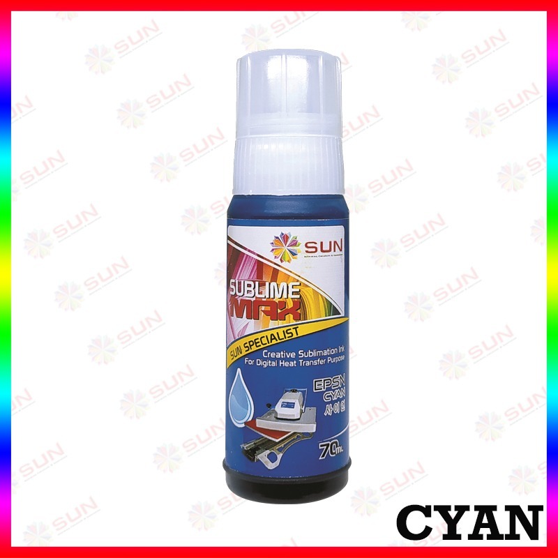 Tinta Epson Sublim 003 / 001 / 664 - SUN Sublime Max 70 ml ( transfer ke mesin press kaos, mug, piring, keramik, lanyard ) untuk Printer Epson L1100 / L1110 / L1111 / L1200 / L1210 / L1211 / L1300 / L3110 / L3111 / L4150 / L4160 / L6160 / L6170 / L6190