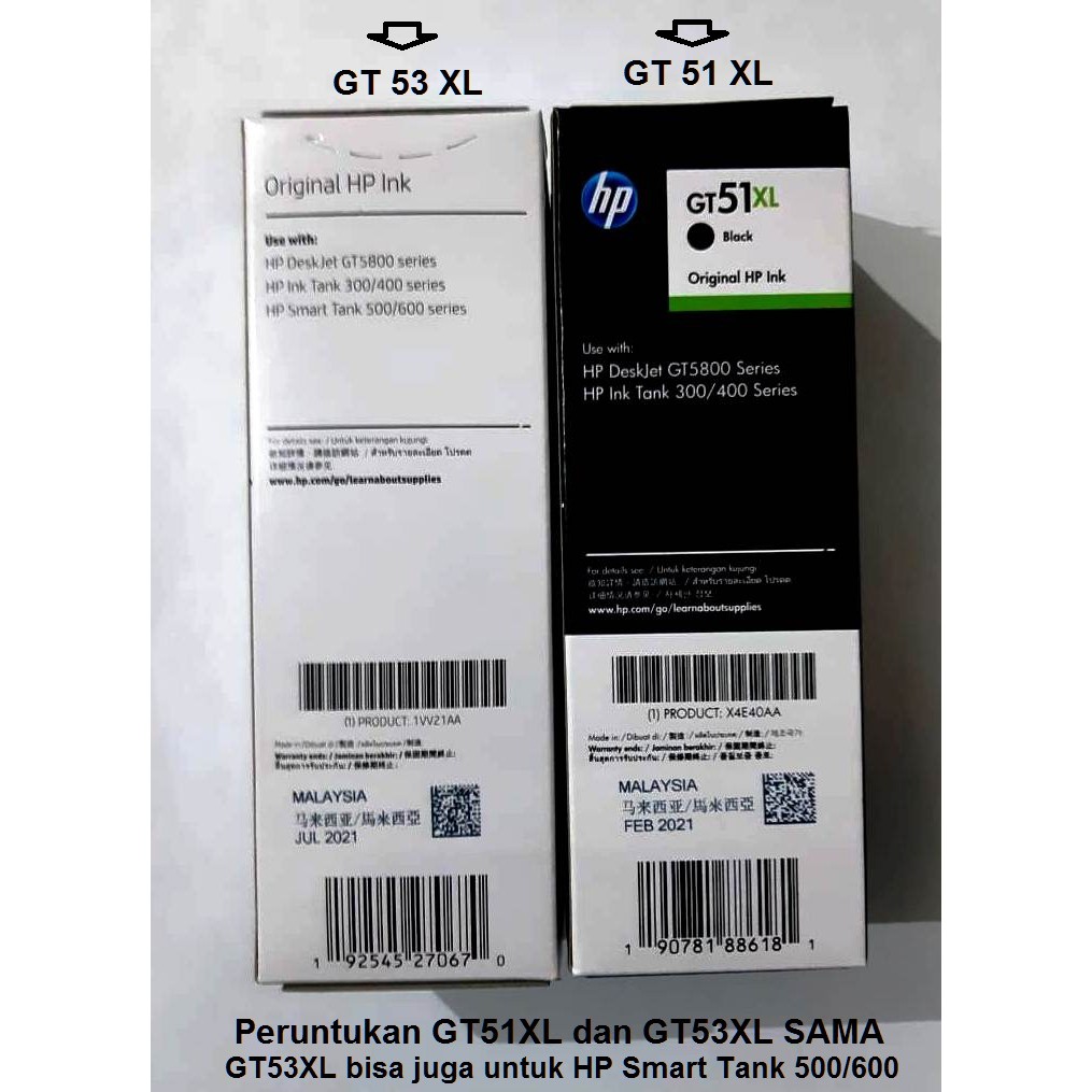 Tinta Inkjet Original HP GT53 XL GT 53 XL black 1VV21AA Hitam pengganti GT51 XL