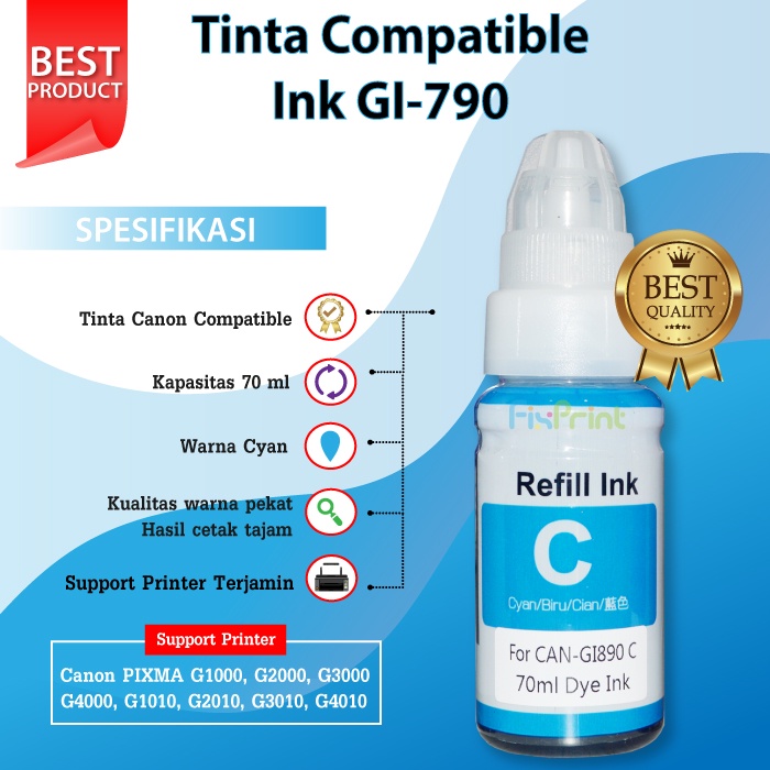 Tinta Premium Ink Canon 135 70ml Refill Printer G1000 G2000 G3000 G4000 G1010 G2010 G3010 G4010 790
