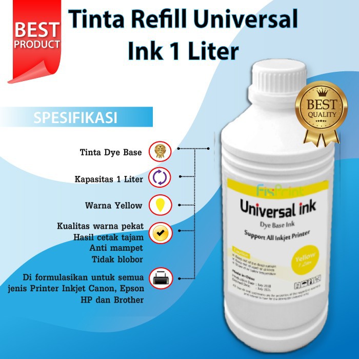 Tinta Printer 1 Liter Universal Ink Refill Cartridge Printer Canon iP2770 MP287 TS307 MX497 HP 2135