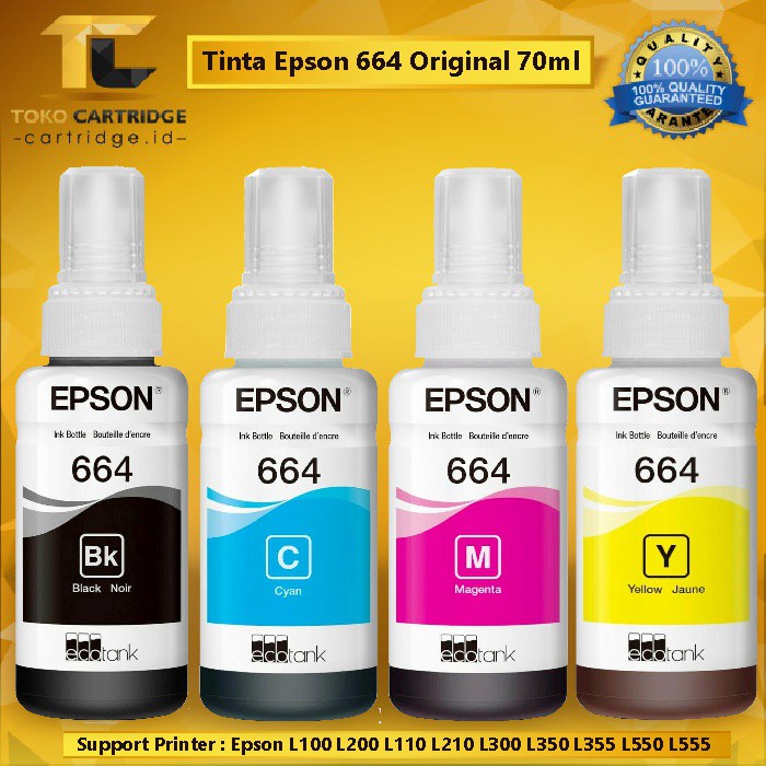 Tinta Printer Epson 664 Original 1 SET WARNA T6641 T6642 T6643 T6644 Black Cyan Magenta Yellow