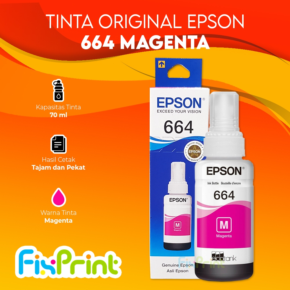 Tinta Printer Epson 664 Original 70ml 1 SET WARNA T6641 T6642 T6643 T6644 Black Cyan Magenta Yellow Print Black Color Magenta Yellow Cyan Ori 100% Hitam Merah Biru Kuning