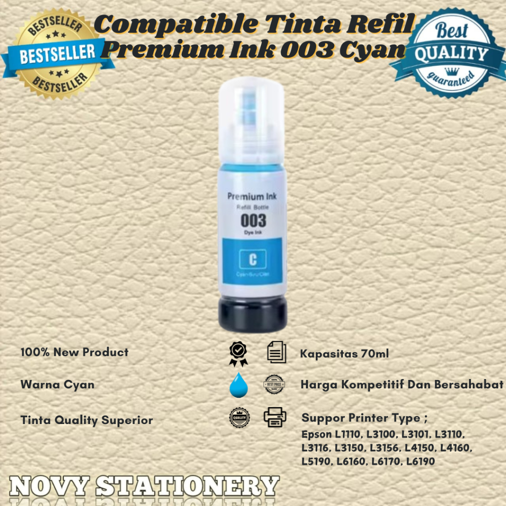 Tinta Refil Premium Epson Ink 003 Printer L1110 L3210 L3110 L3210 L5190 L5290