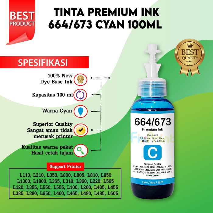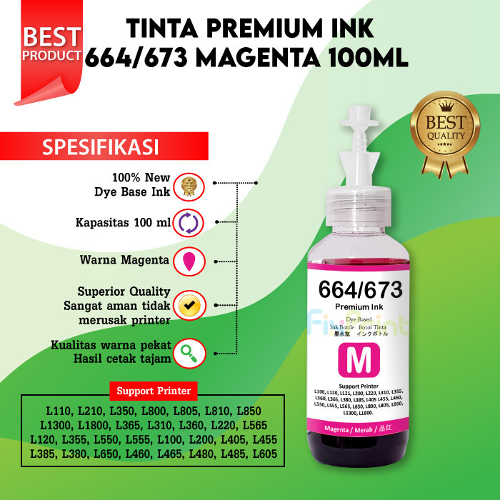 Tinta Refill 664 Premium Ink Epsn 664 Refill 100ml Printer L1300 L1455 L121 L120 L380 L385 L405 L455 L485 L550 L555 L565 Black Cyan Magenta Yellow
