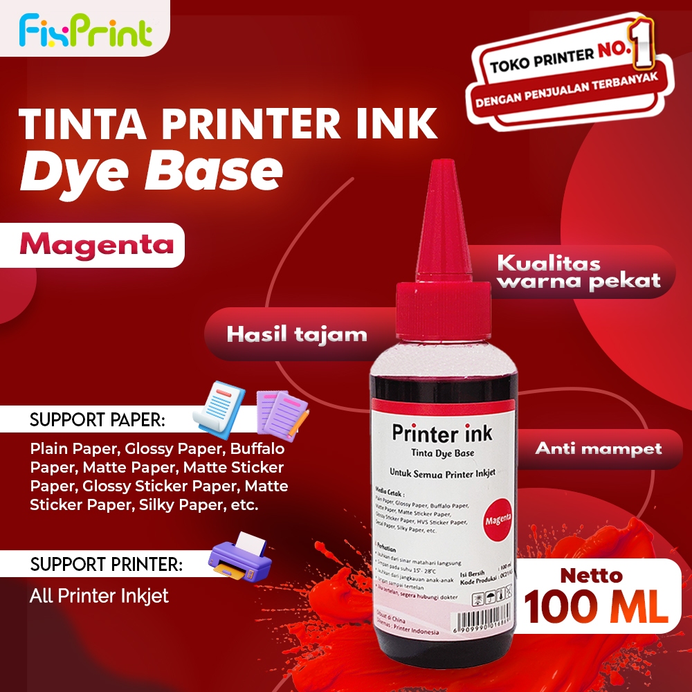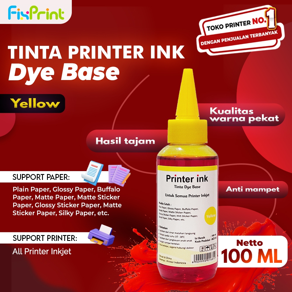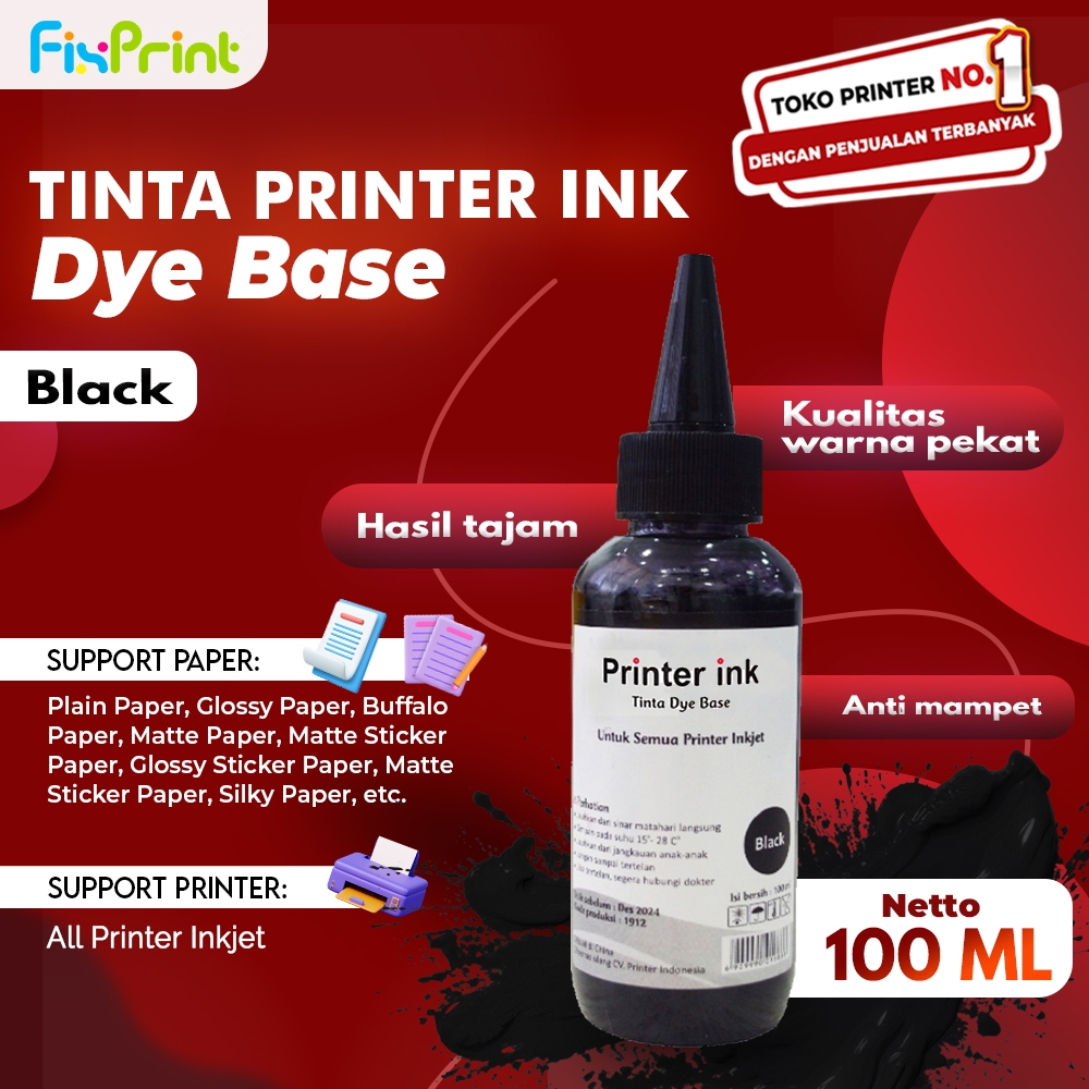 Tinta Dye Base 100ml Printer Print Black Color Isi Ulang Dye Universal