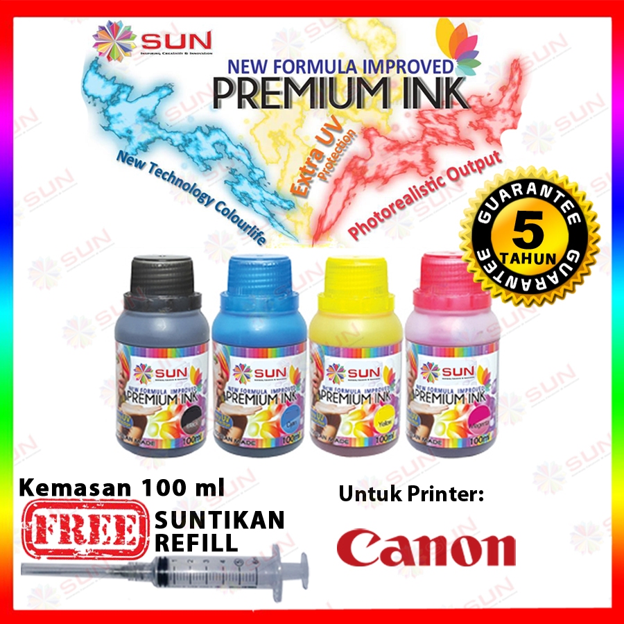 Tinta Refill Epson 003 057 664 673 / Tinta Canon IP2770 790 810 811 / Tinta 678 680 GT52 GT53 - SUN Premium Ink NFI 100 ml