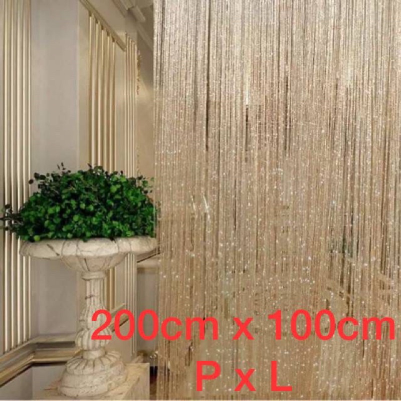Tirai benang gold gliter 1x2 meter / tirai pintu / warna GOLD