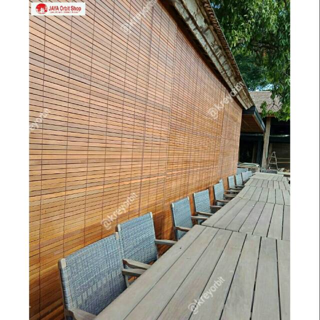 Tirai kayu L 2m x T 3m / krey kayu outdoor / krei kayu / kerei kayu / tirai kayu gulung / tirai kayu outdoor/ gorden kayu / krey penghalau panas matahari / tirai kayu anti air