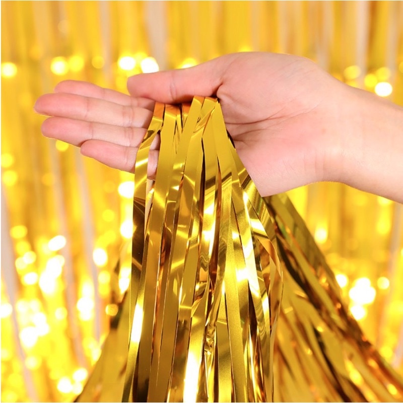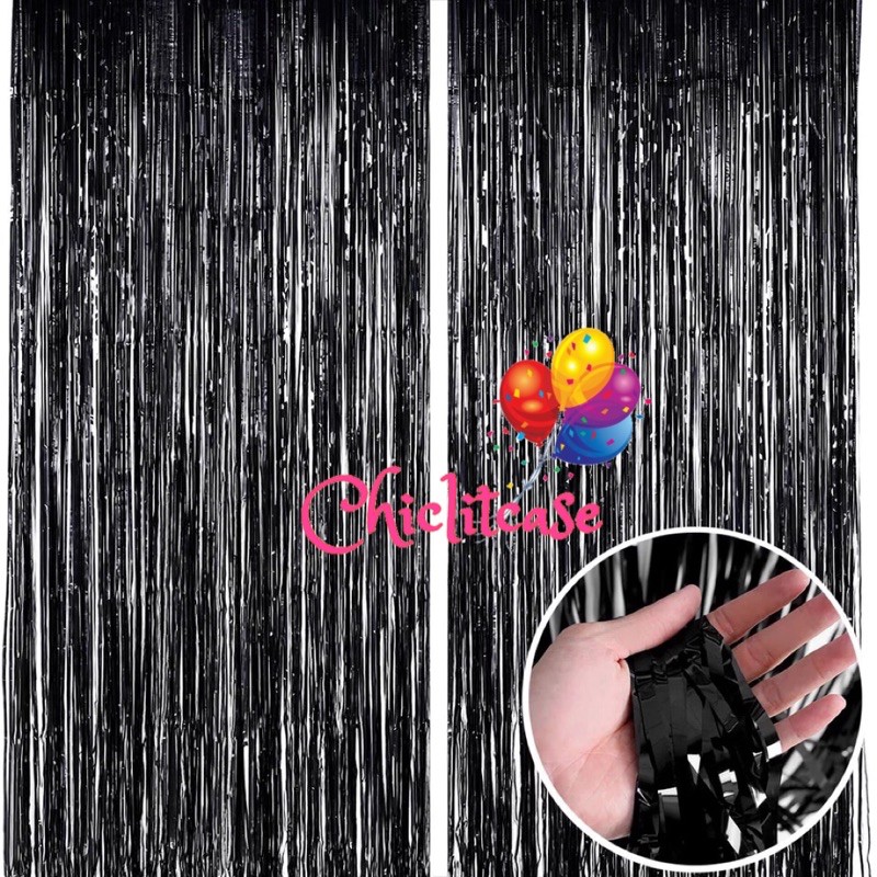 Tirai rumbai foil backdrop pesta / party / curtain hitam selinget foil 200x100 cm dekorasi 1 M x 2 M
