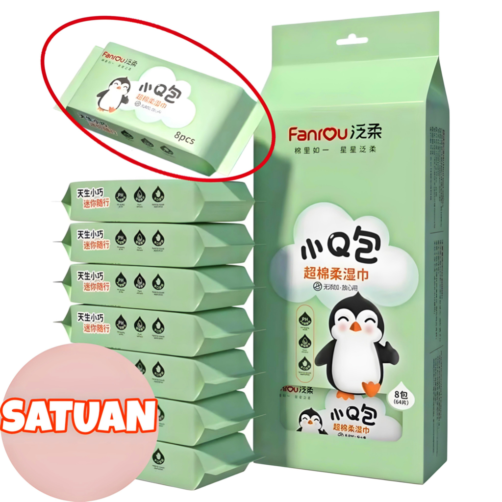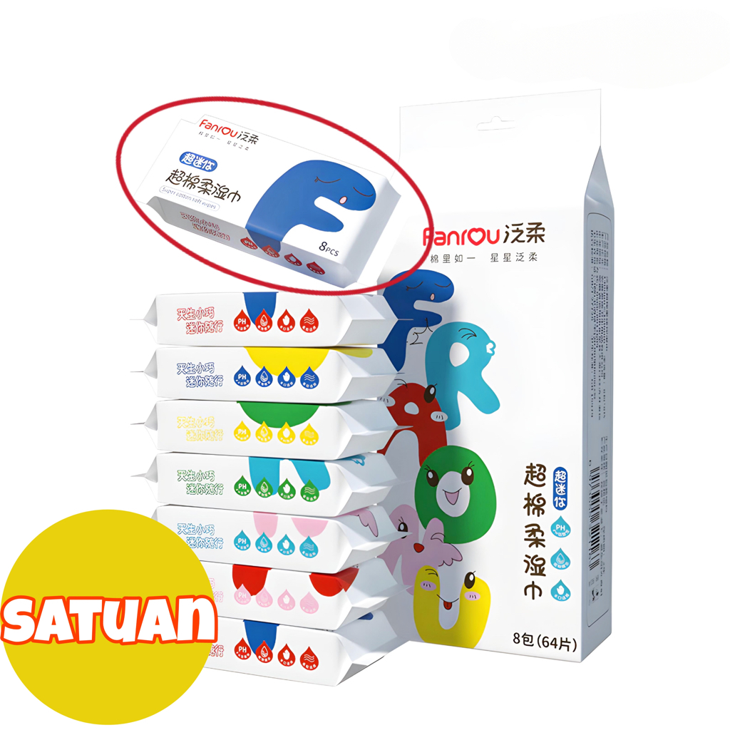 Tissue Basah Mini Satuan Tisu basah karakter lucu non alkohol / Tissue basah ekonomis Wet Tissue Mini Character Tissue basah saku traveling ringkas praktis / Tissue Basah Isi 8 Lembar