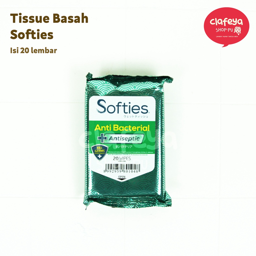 Tissue Basah Softies Antibacterial 20 Wipes - Tisu Basah Merk Softies