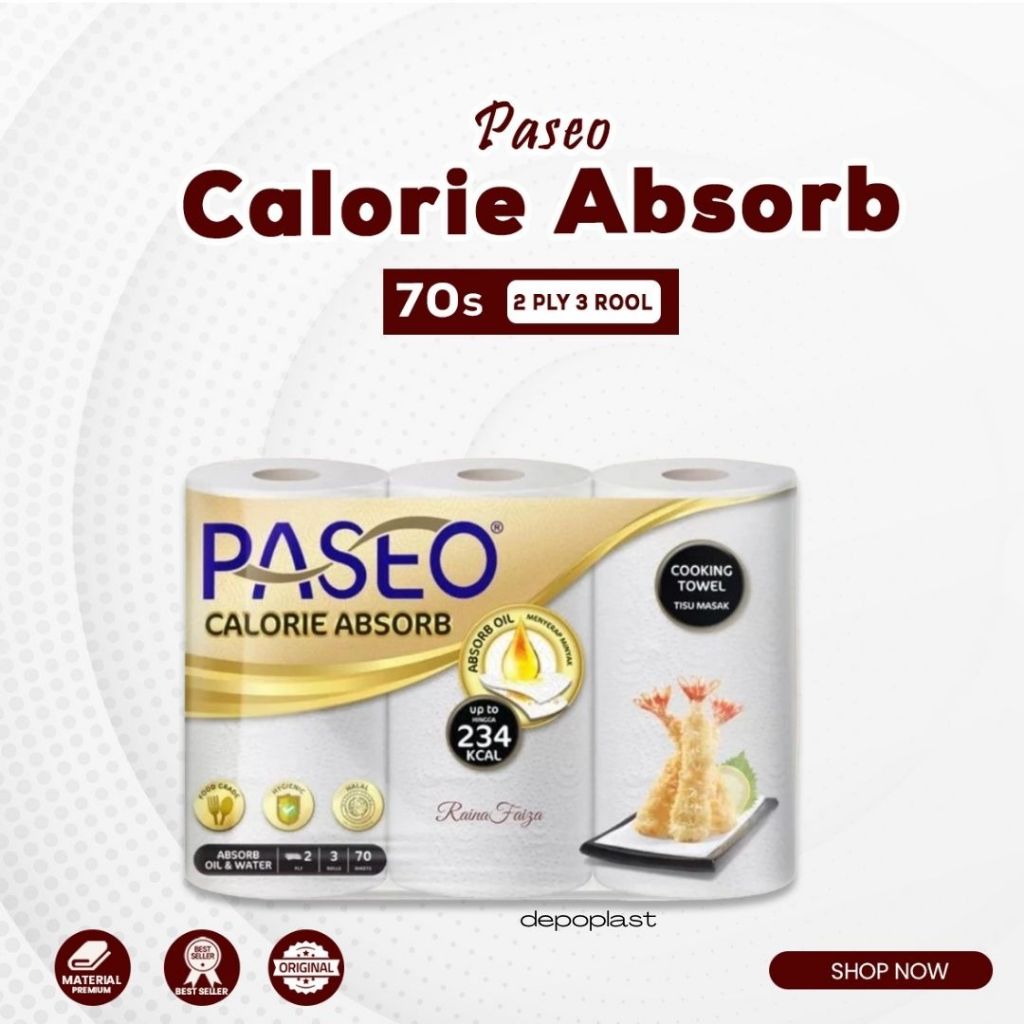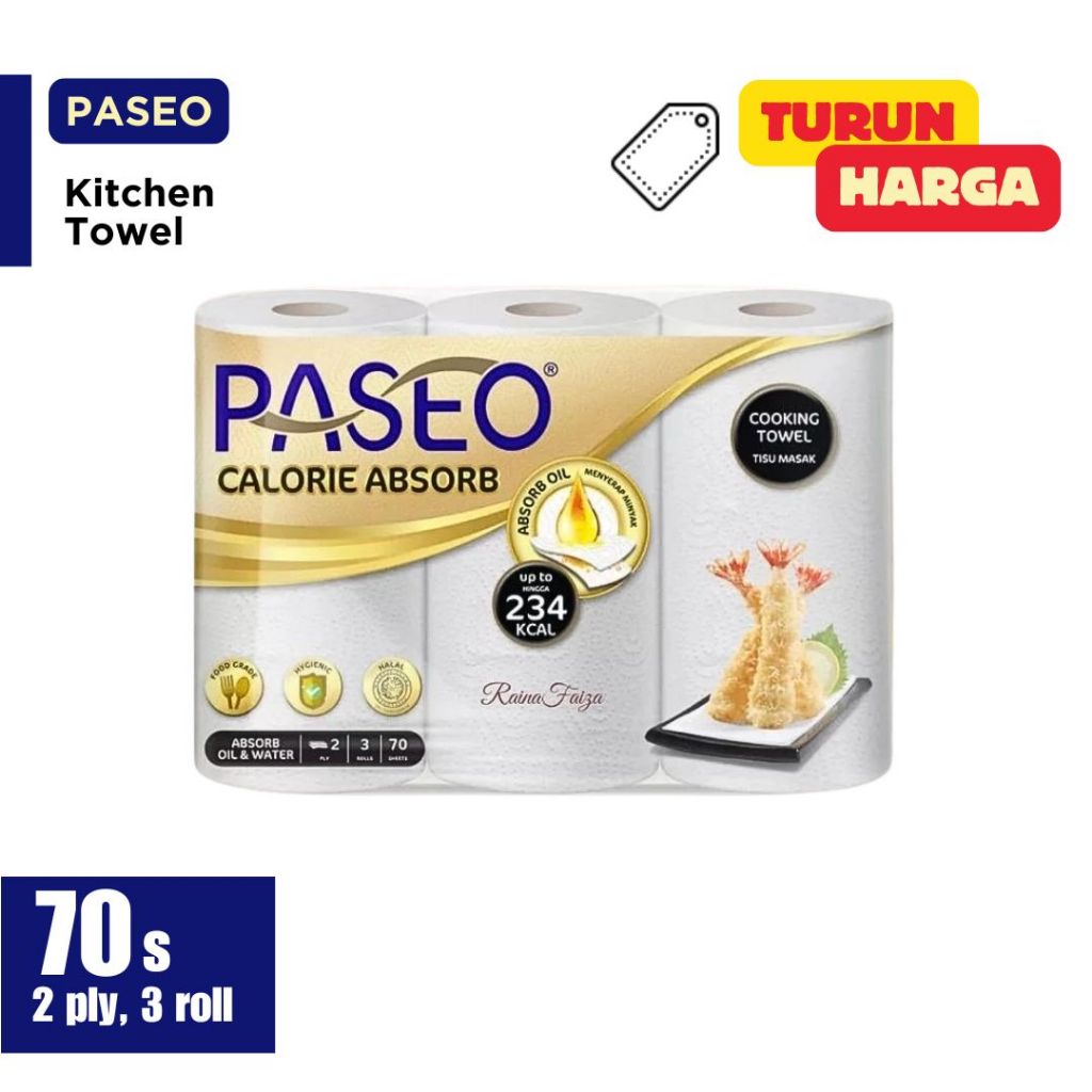 Paseo Kitchen Towel Tissue Calorie Absorb Tisu Dapur Serap Minyak 3 roll x 70 sheets