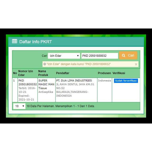 Tissue / Tisu Super Power Magic Man 1 Kotak Isi 6