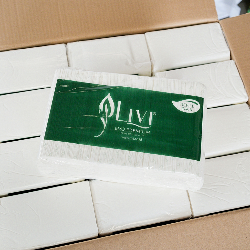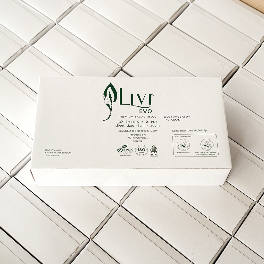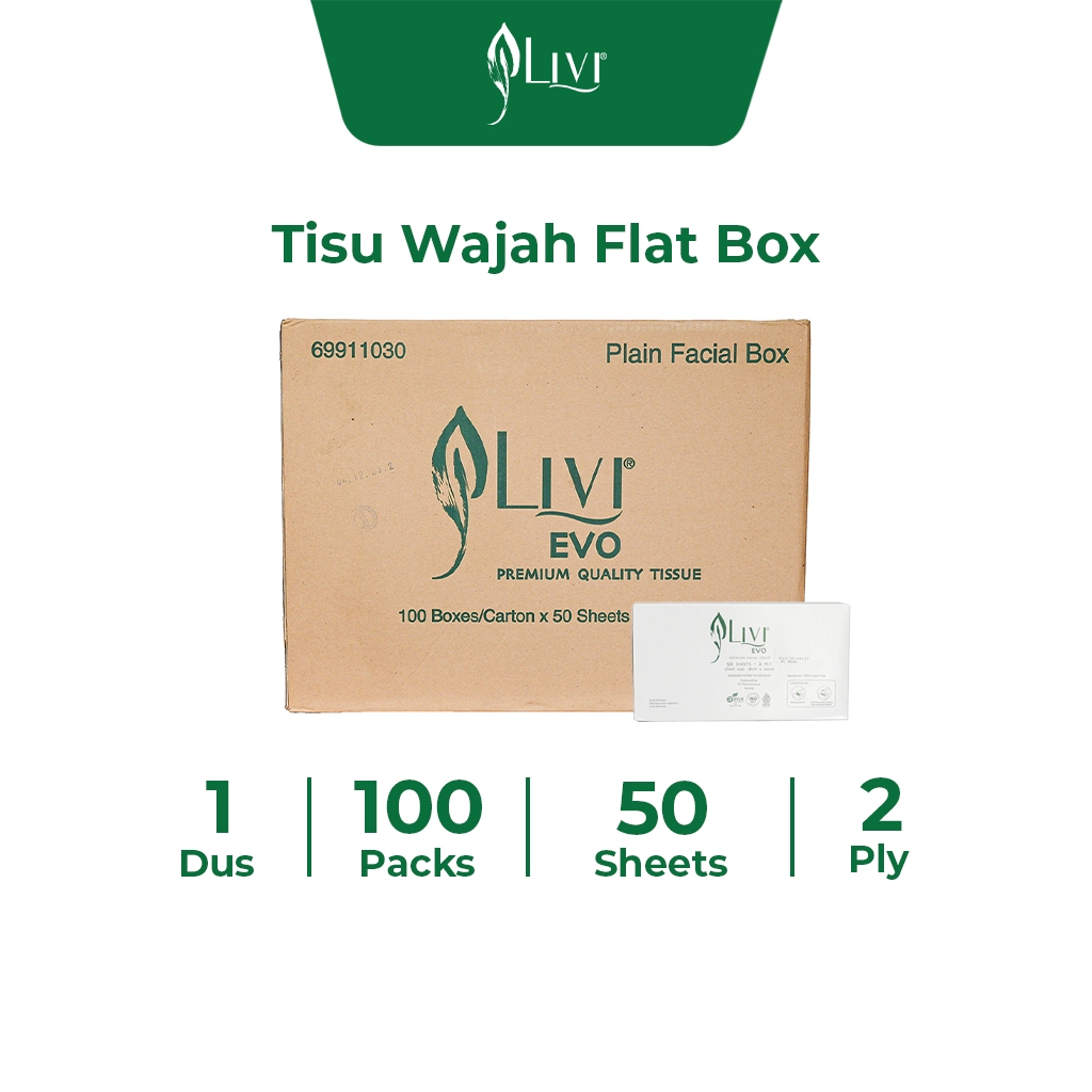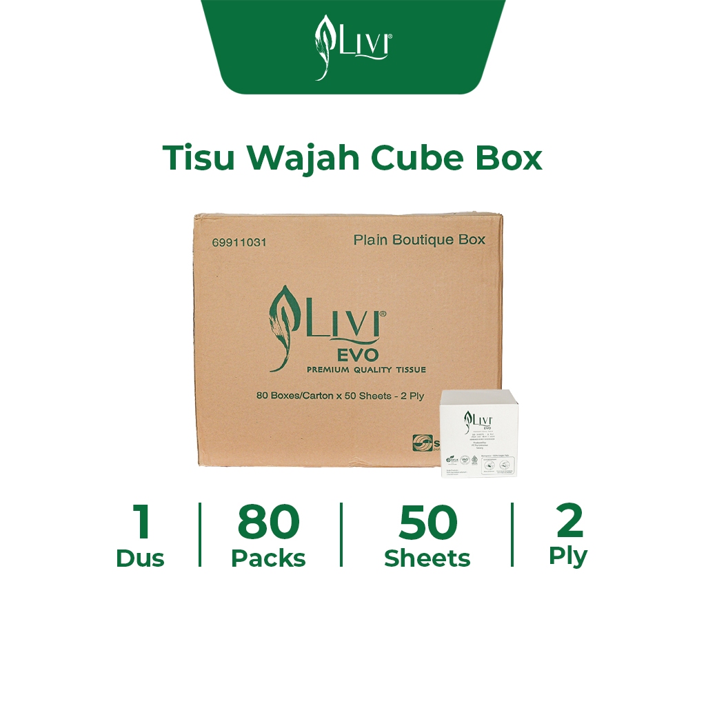 Tisu LIVI Evo Premium Plain Facial 1 Dus | Tissue Wajah Livi | Flat Box | Refill | Cube Box - 2 Ply