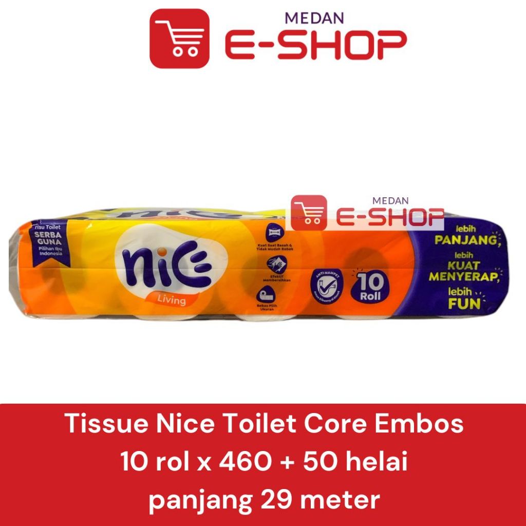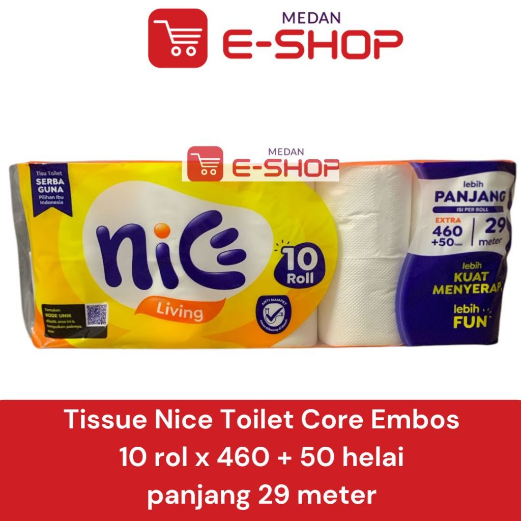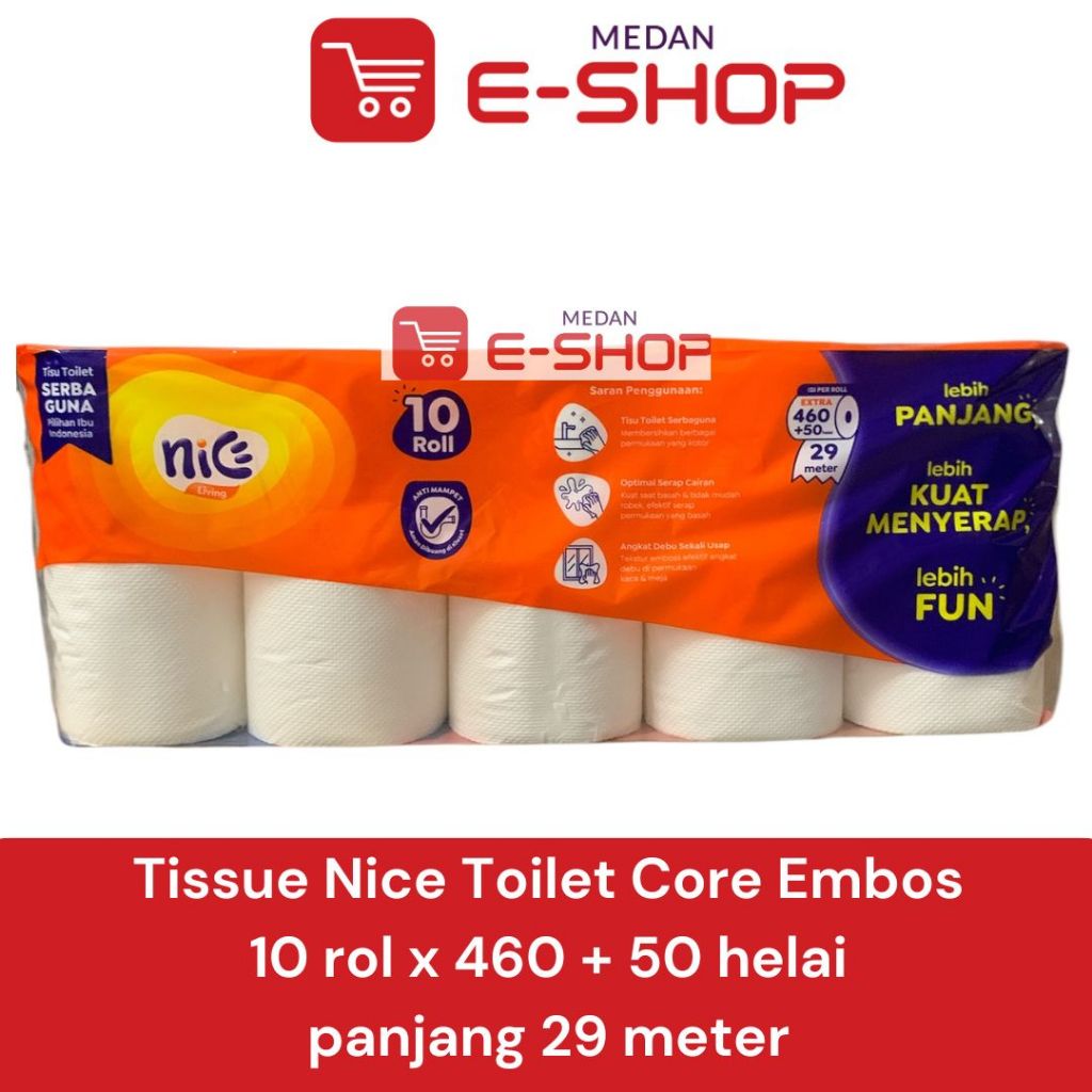 Tisu Tissue NICE Roll Gulung / Toilet Core Embos / Warteg / Bathroom 10 Rolls x 460 + 50 helai Panjang 29 meter