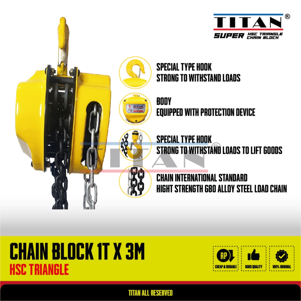 Titan Chain Block 1 Ton x 3 Meter / Takel 1Ton x 3Meter / Katrol 1T x 3M / Hand Chain 1 T x 3 M Manual Hoist