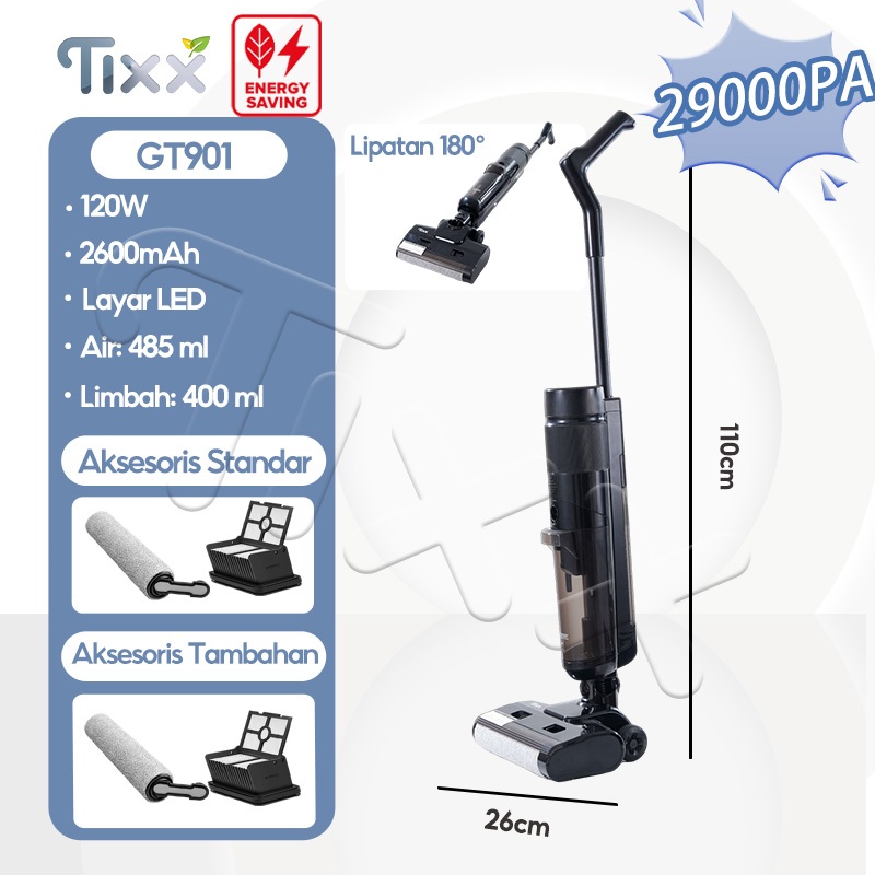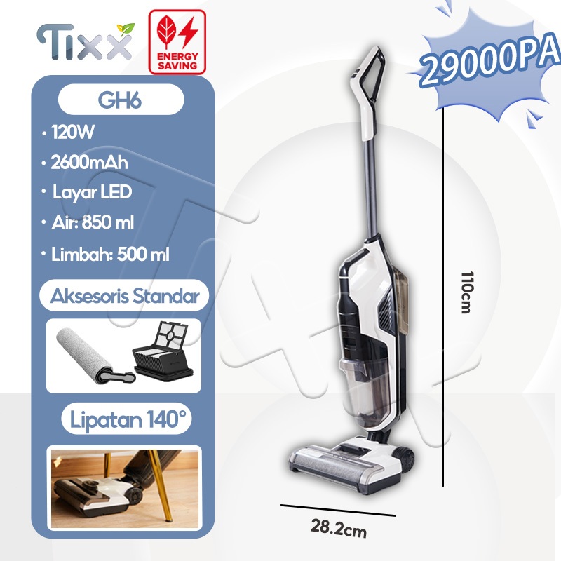 TIXX Vacuum Cleaner Wet and Dry Penyedot Debu 29000PA Cordless Stick Floor Washer Mendukung Berbagai Cairan Pembersih
