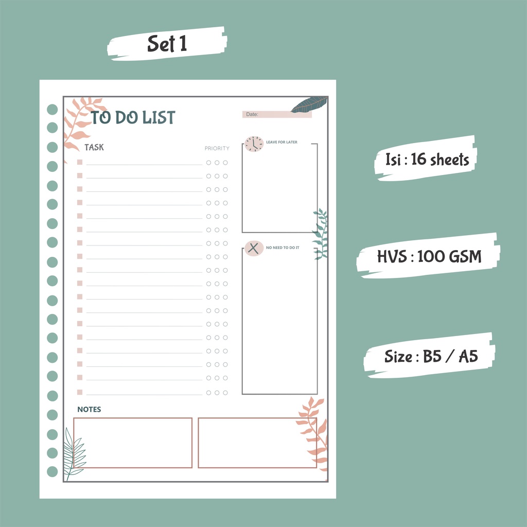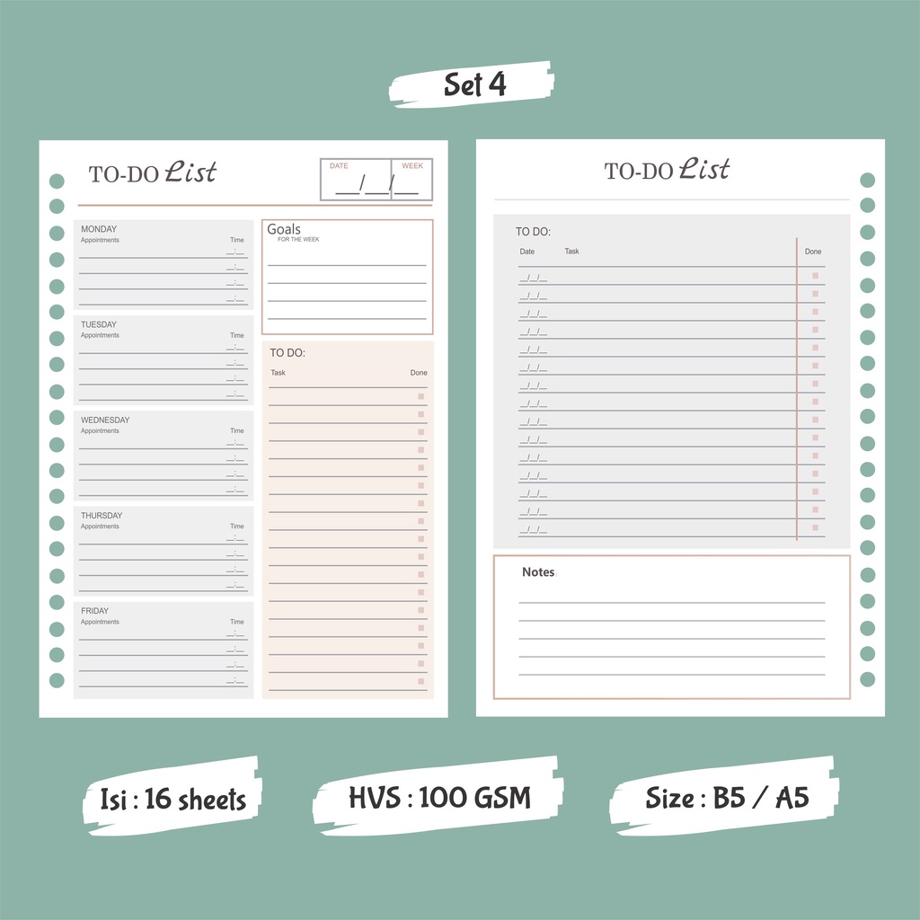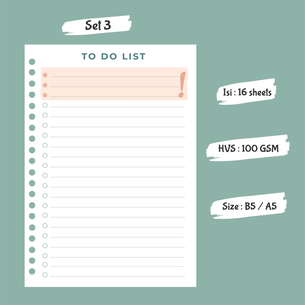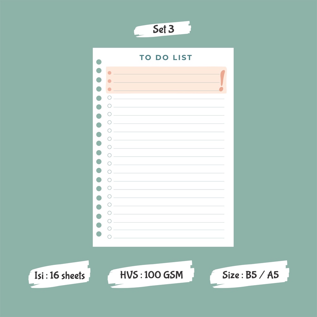 To Do List / Weekly To Do List - Binder Loose Leaf B5 & A5 - Paper Only