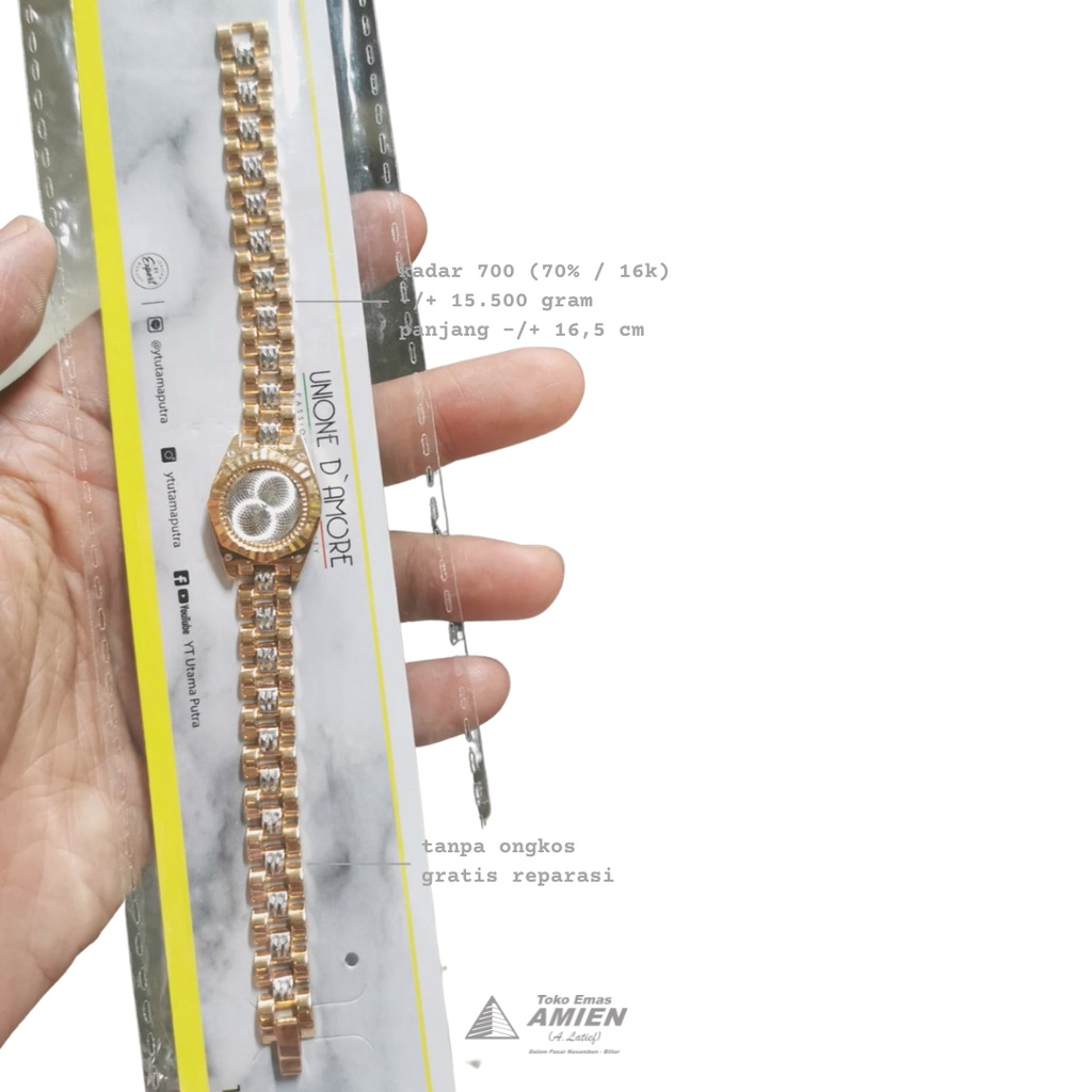 Toko Emas Amien Gelang Emas Asli YT Gold Kadar 700 (70% / 16K) 15.500 Gram - Bracelet Rantai Jam