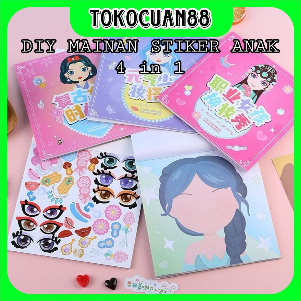 Tokocuan88 - DIY Buku Anak-Anak / Buku Stiker Keterampilan Untuk Anak / Stiker Make-up DIY Mainan Keterampilan Merias Wajah