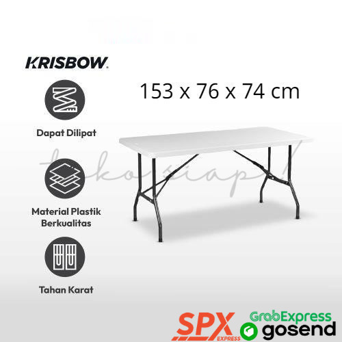 Tokosiap Krisbow Meja Lipat 152 cm - Putih Meja Serbaguna Folding Table Multifunctional Foldable Desk Picnic Table Furniture House instant kurir