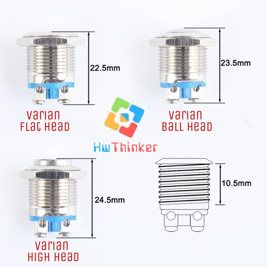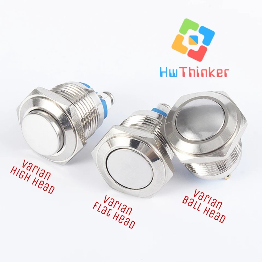 Tombol Stainless Steel Metal 12mm 16mm 19mm 22mm Car Push Button On Momentary Flat High Round Head Klakson Horn Switch